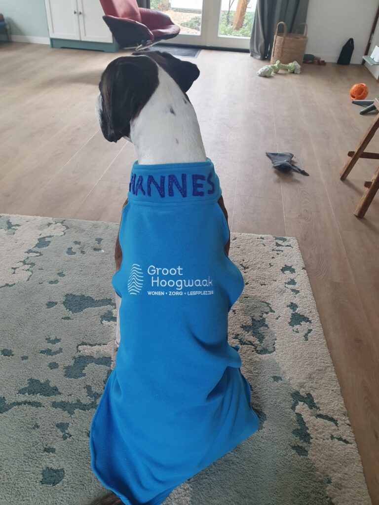 Als dank voor mijn collegialiteit heb ik sinds kort mijn eigen kledinglijn van het werk. Lekker warm voor in de winter en herkenbaar voor iedereen die ik tegen kom. Dus mocht je mij tegen komen in mijn blauwe huisjas van werk, graag even zwaaien en dan help ik jou ook als het nodig mocht zijn. Daar zijn we toch collega’s voor?